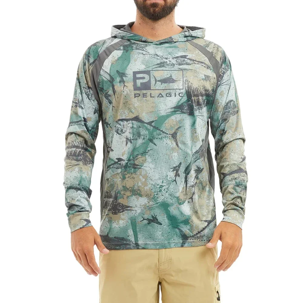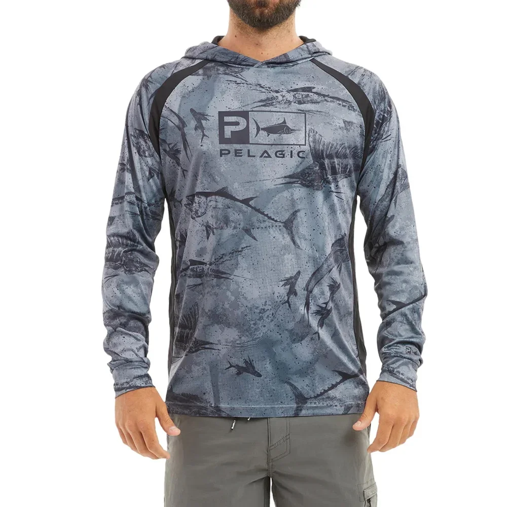 Men Hood Fishing Shirt long sleeve fishing t sh...