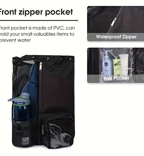 • Swim Bag Mesh Drawstring Backpack with Wet Pocket Multipurpose Beach Backpack for Swimming, Gym, and Workout Gear