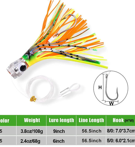 108g Trolling lure marlin tuna mahi dolphin durado wahoo shark Skirts big game leader fishing rigs deep sea fishing Lure