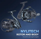 • ReKon Saltwater Spinning Fishing Reel for Big Game Fishing Up to 55LBs Max Drag Innovative NyliTech Body Design Water Resistant