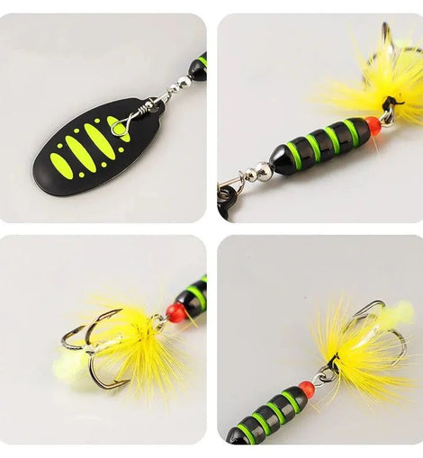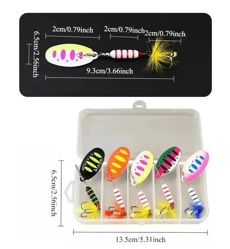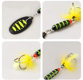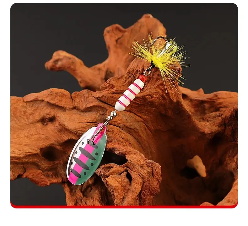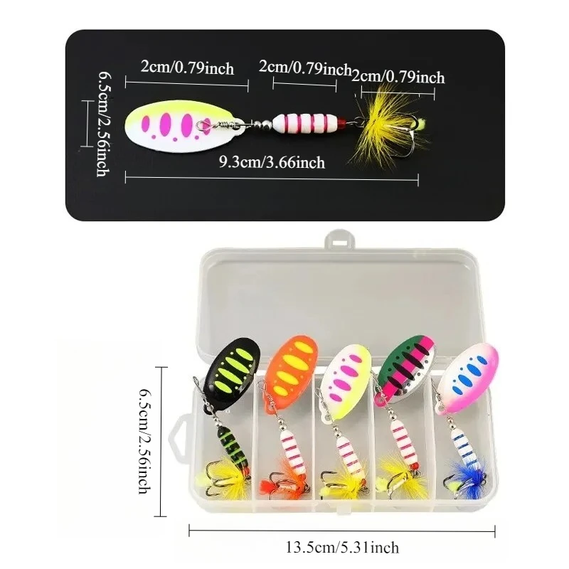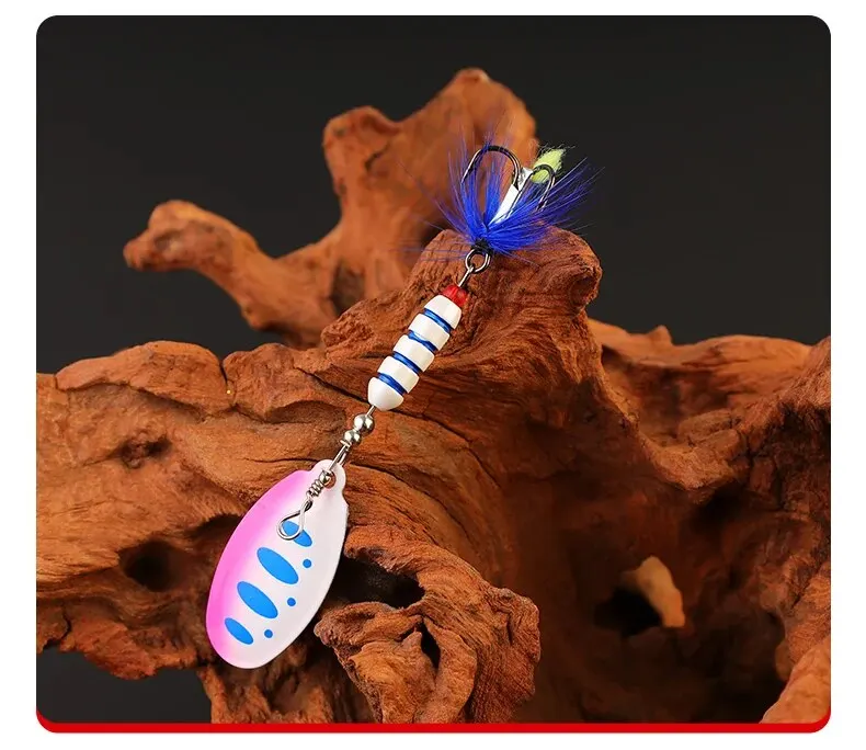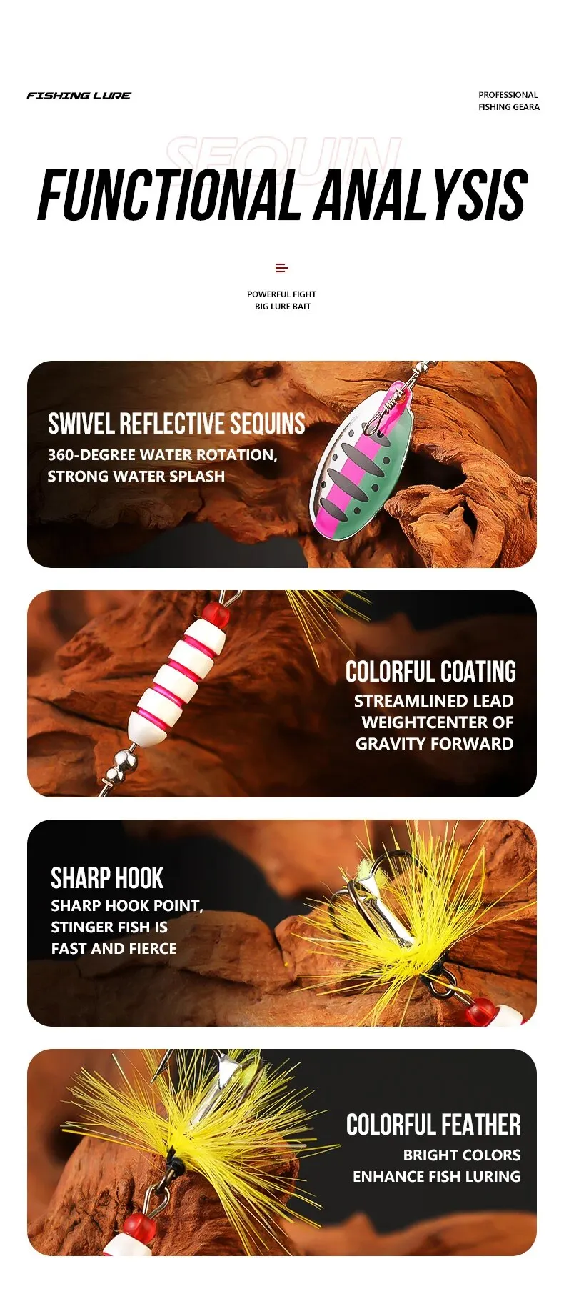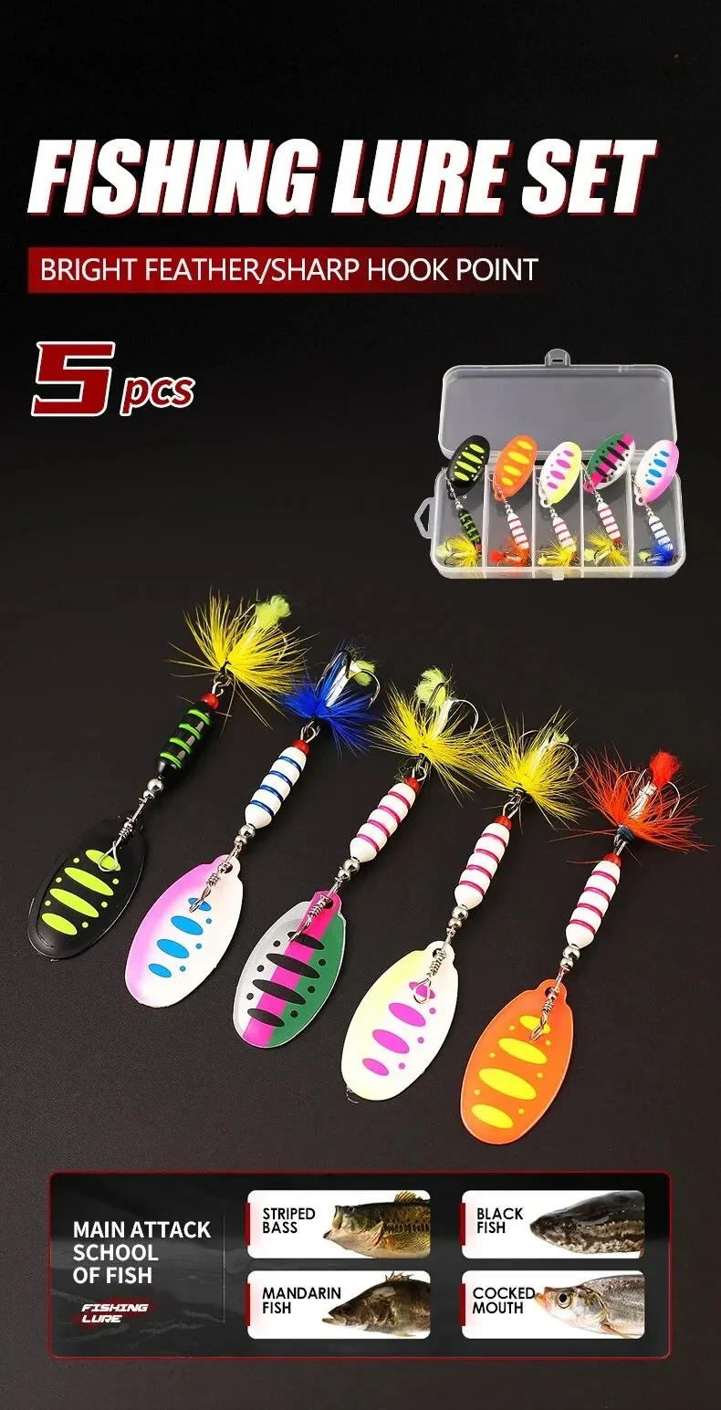 • Lure Set Metal Lures Copper Pillar Feather Treble Hooks Rotating/Swinging Spoons Artificial Bait for Sea Fishing Tackle