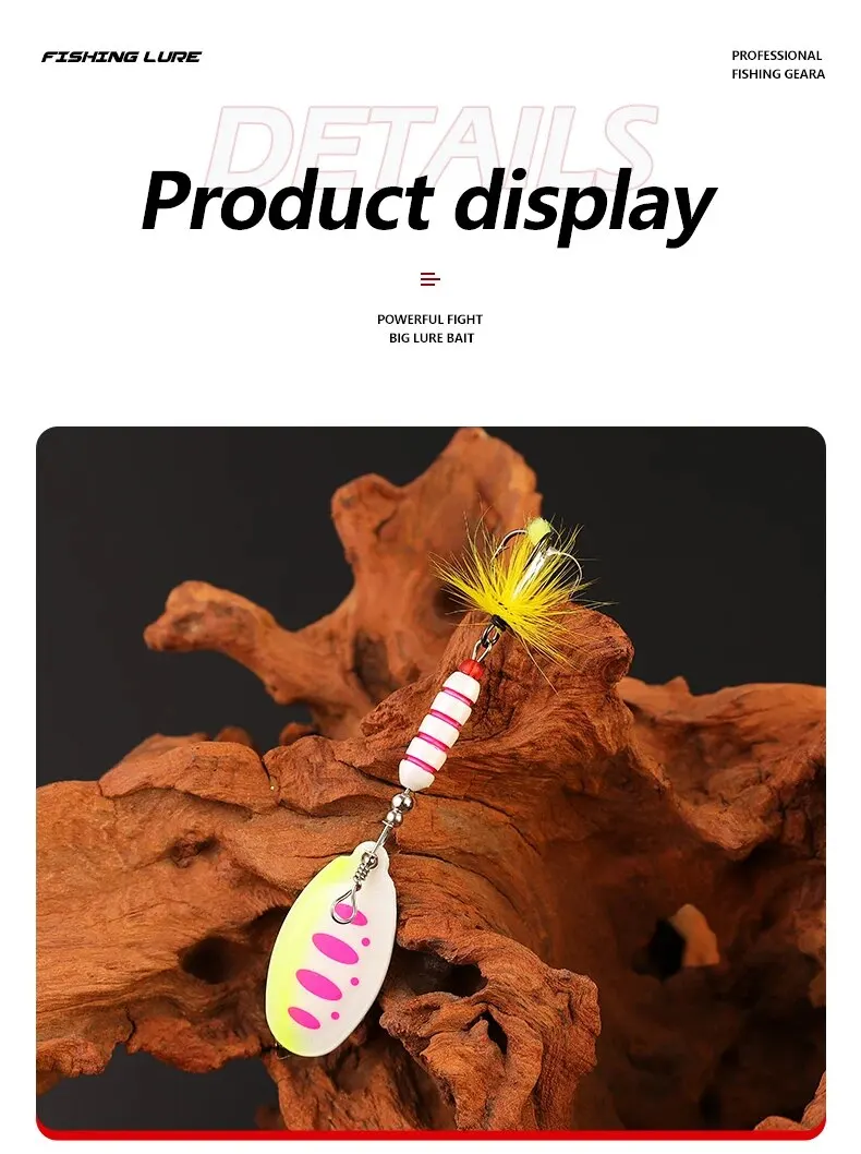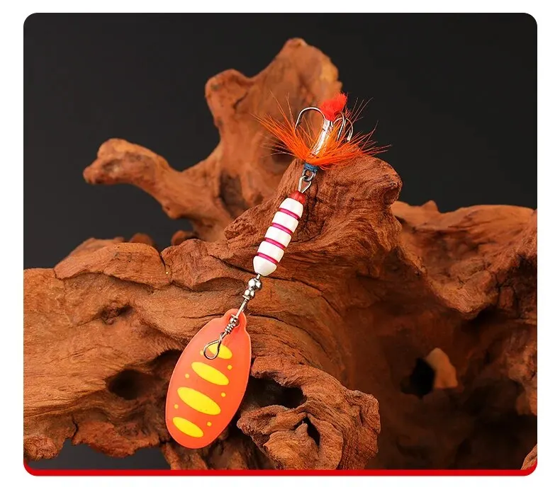 【Features】: This product is composed of colorful rotating glitter, copper pendant, feather three hooks, flexible swimming in the water, suitable for multiple species of fish.