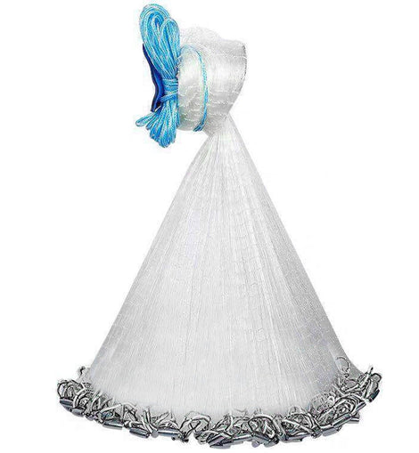 1Pc 2 Size Options 6FT 8FT Radius Fishing Cast Net Bait Trap Easy Throw Heavy Duty Hand Cast Net With Chain Sinker Bottom Spread - The Salty Outfitter