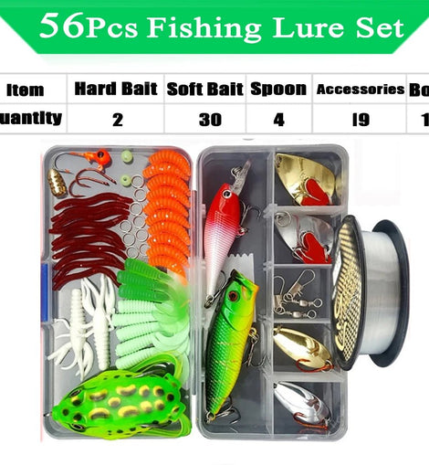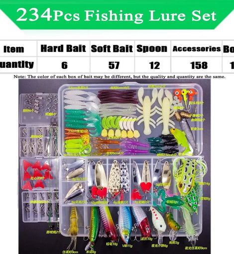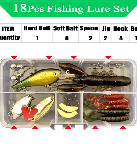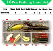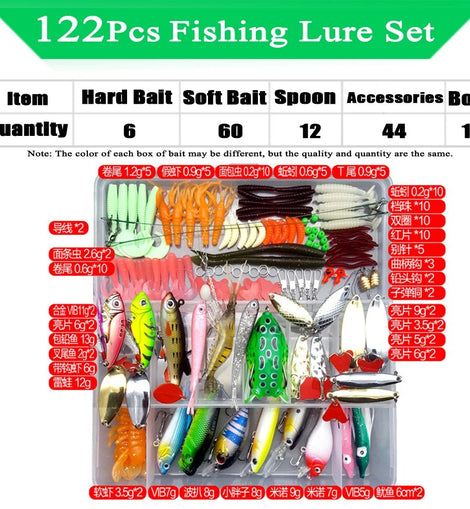 • Fishing Lure Kit Soft and Hard Bait Set Gear Layer Minnow Metal Jig Spoon For Bass Pike Crank Tackle Accessories with Box