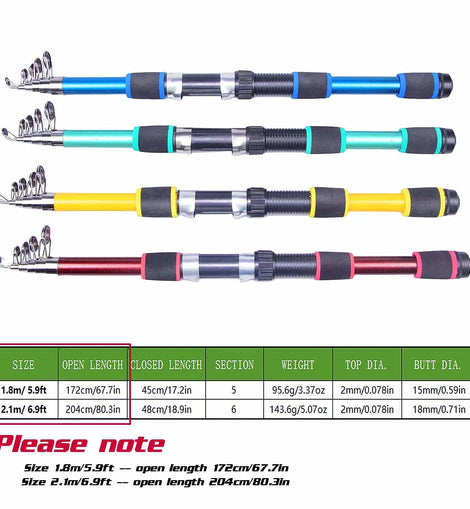 • 1.8m 2.1M Fishing Rod and Reel Line Lure Set Carbon Fiber Telescopic Fishing Rod 5.2:1BB Spinning Reel for Saltwater Freshwater
