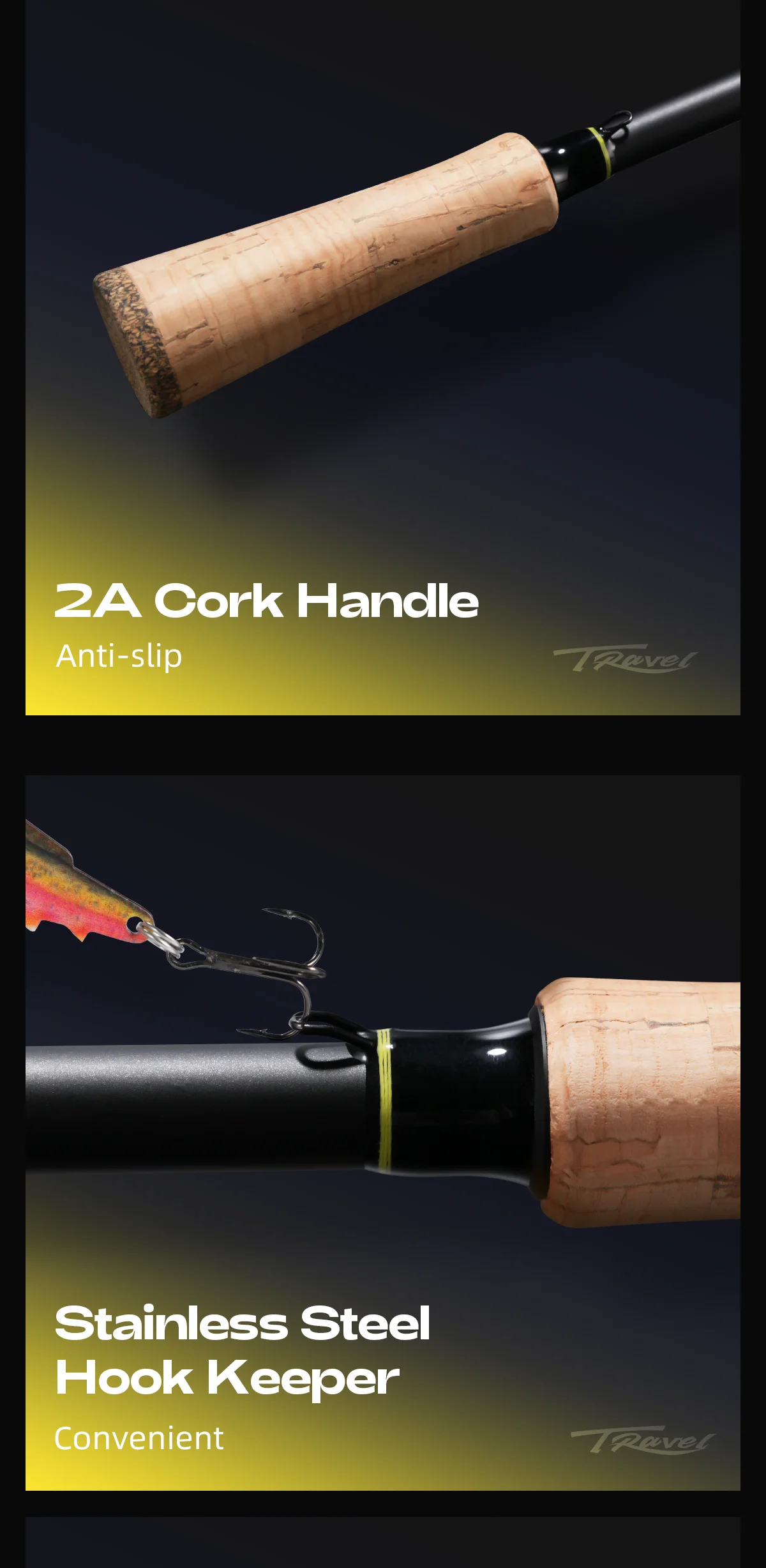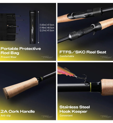 Choose “M1 Travel fishing rod”, travel and fishing can be together.