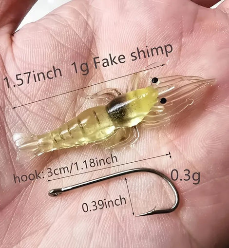 Enhance your angling success with this 3.99cm/1.57" ultra-realistic shrimp lure weighing only 1.3g. Its segmented body creates natural swimming motion while the holographic eyes attract predatory fish even in murky waters.