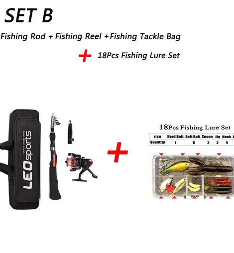 Set B: Fishing Rod+Reel +Bag +18Pcs Bait
