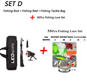 Set D: Fishing Rod+Reel +Bag+56Pcs Bait