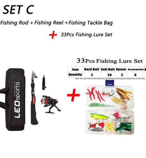 Set C: Fishing Rod+Reel +Bag +33Pcs Bait