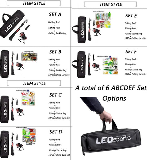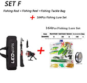 Set F: Fishing Rod+Reel +Bag +164Pcs Bait