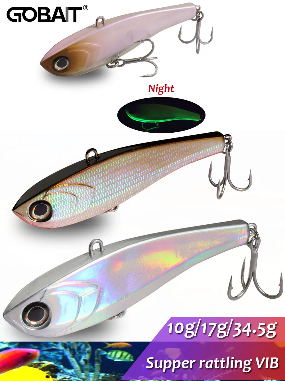 GOBAIT High pitch VIB sinking pencil lure minnow 10g 17g 34.5gCrankbaits tackle sharp fish hook sea kit pesca Jerkbait tool long casting spinning treble hooks spinnerbait pesca pike popper professional trout wobbler carp spoon spinner hybrid twitch vib and pencil holographic skin excellent castbility imatate real rat vividly 3D pain strength treble hook electroplate plating VIBRATION artificial bait