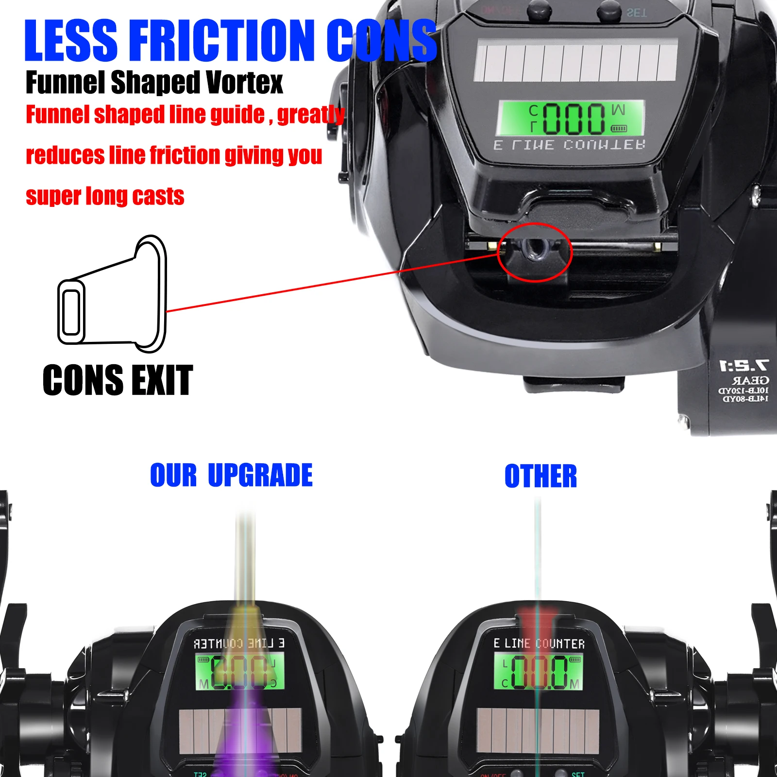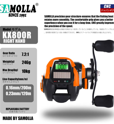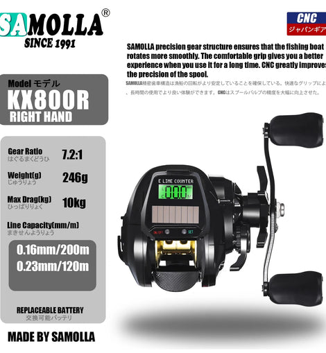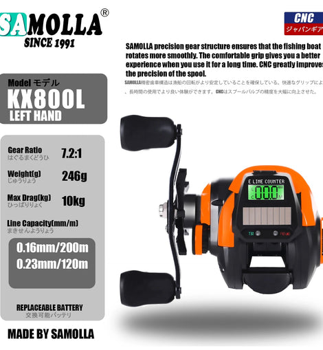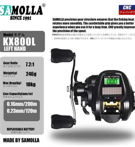 • New Electronic Baitcasting Fishing Reel Led Screen USB And Solar Charging 7.2:1 Sea Saltwater Waterproof Cast Drum Wheel Casting