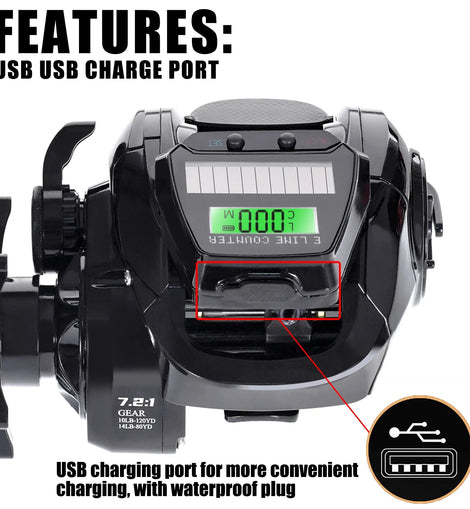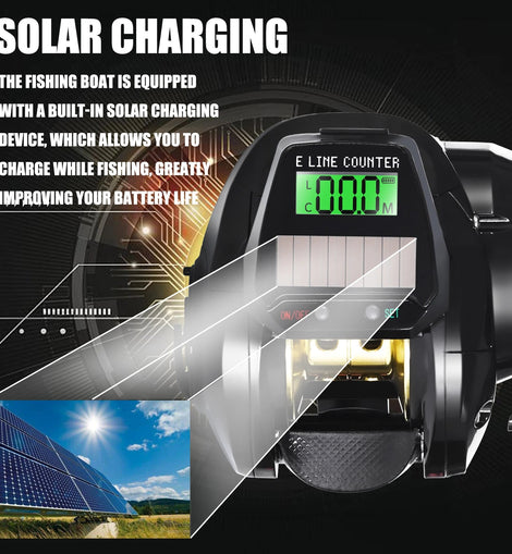 New Electronic Baitcasting Fishing Reel Led Screen USB And Solar Charging 7.2:1 Sea Saltwater Waterproof Cast Drum Wheel Casting - The Salty Outfitter